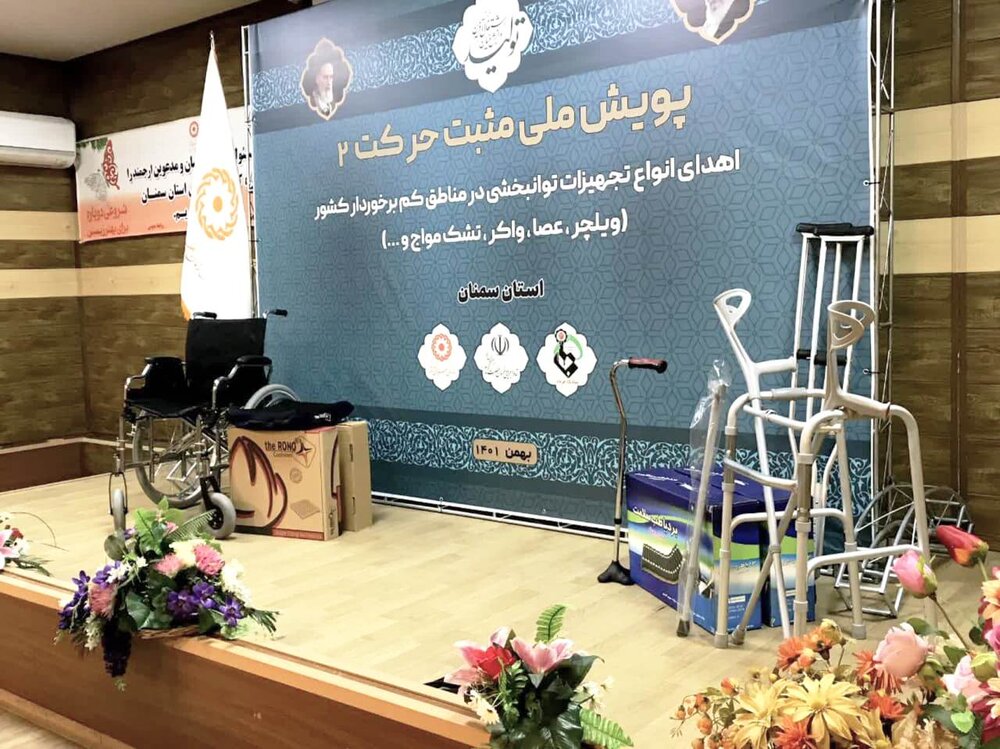 توزیع انواع تجهیزات توانبخشی ویژه معلولان در قالب پویش «مثبت حرکت دو» توسط بنیاد 15 خرداد ستاد اجرایی فرمان حضرت امام ره دراستان سمنان آغاز شد.