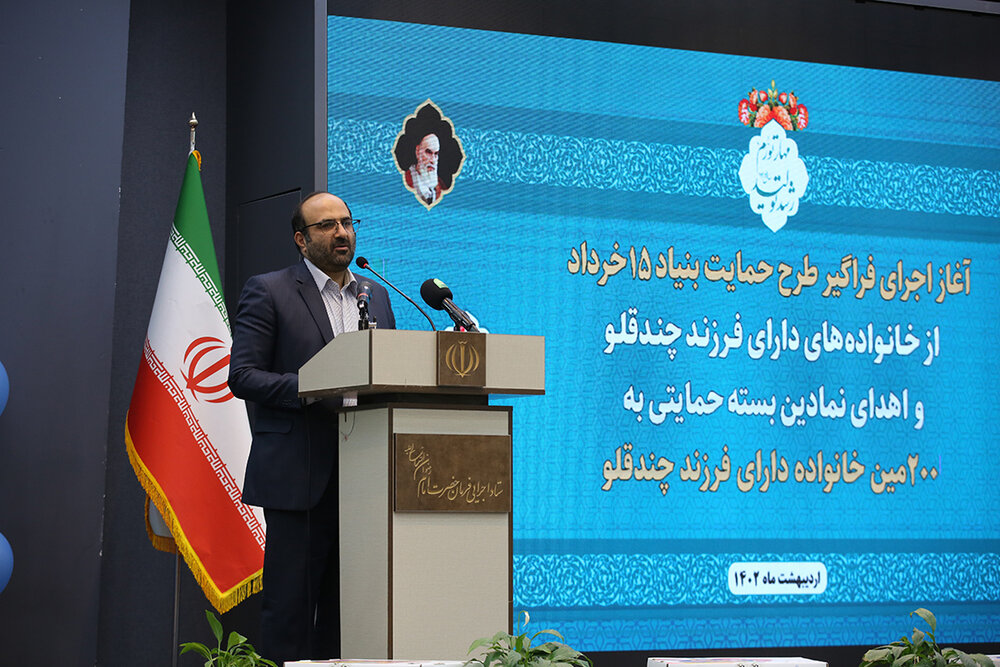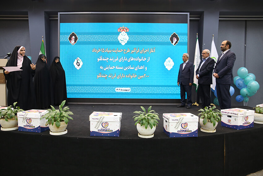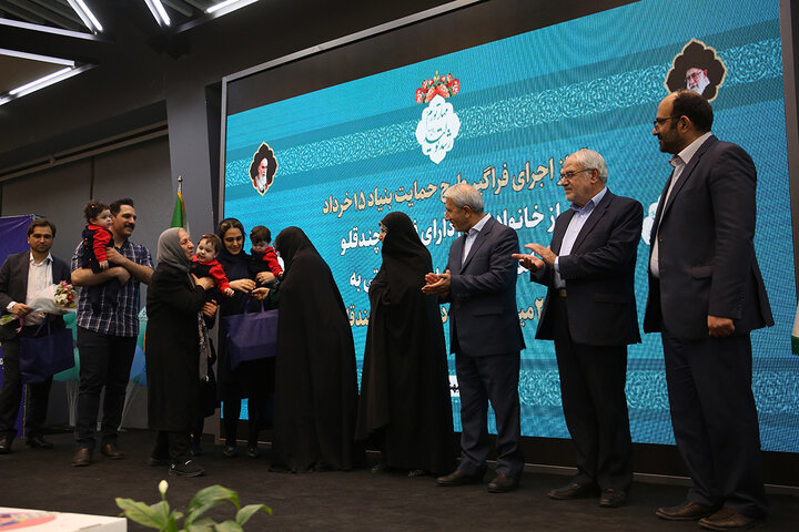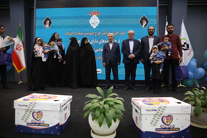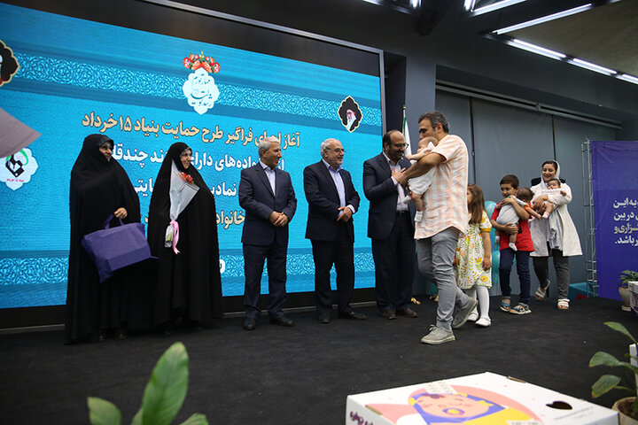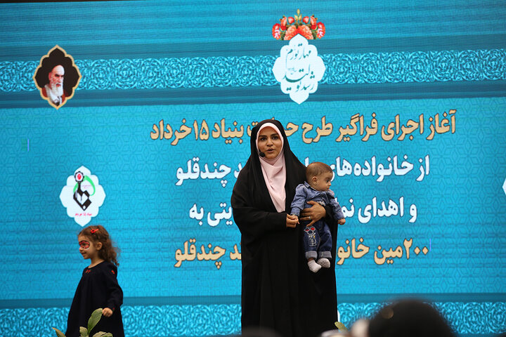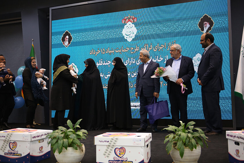 مراسم آغاز اجرای طرح حمایت بنیاد ۱۵ خرداد ستاد اجرایی فرمان امام از خانوادههای دارای فرزند چندقلو و اهدای نمادین بسته حمایتی به دویستمین خانواده تحت حمایت این بنیاد برگزار شد.