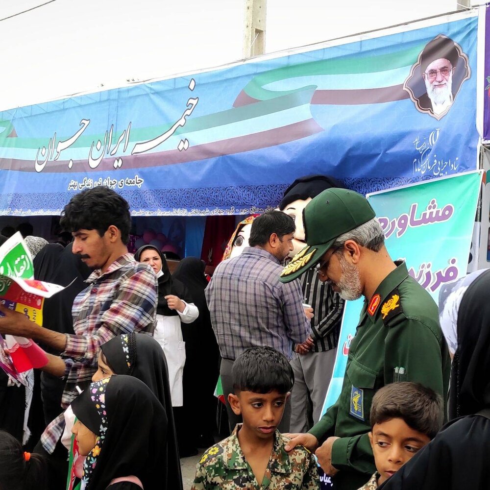 دوشنبه ۲۳ بهمن ۱۴۰۲ - ۱۵:۴۰ صفحه اصلی استانها هرمزگان گزارش تصویری خیمه ایران جوان در راهپیمایی ۲۲ بهمن بندرعباس به همت بنیاد ۱۵ خرداد ستاد اجرایی خیمه ایران جوان با هدف توجه به فرزند آوری در حاشیه راهپیمایی ۲۲ بهمن در بندرعباس دایر شد.